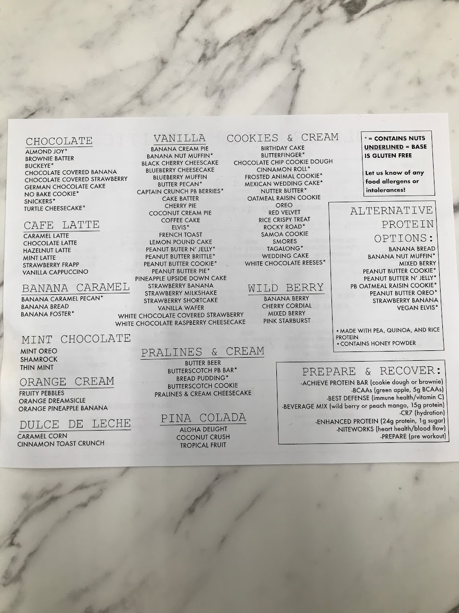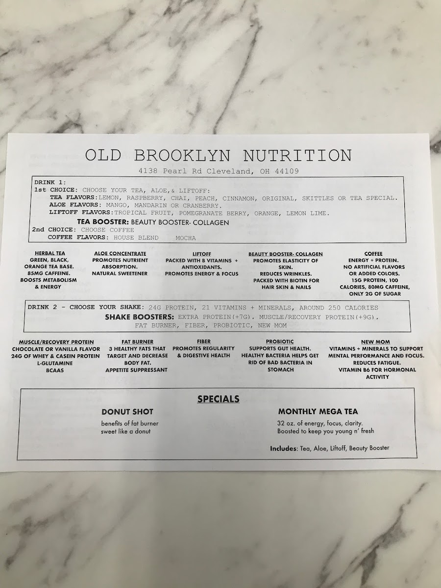 Old Brooklyn Nutrition Menu